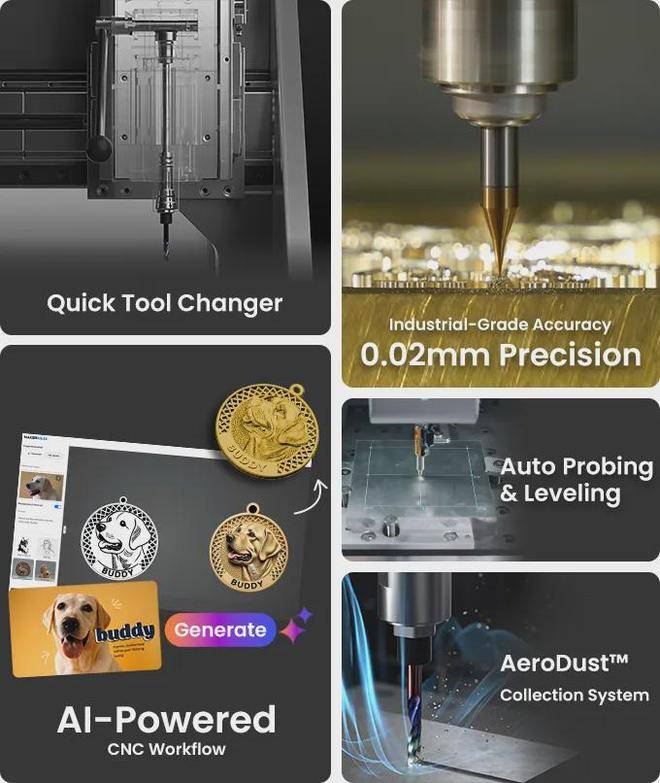 造物时代成立于2019年,创始人张邱溪毕业于北京航空航天大学计算机系,有十余年软硬件研发经验,同时是资深创客。起点很有意思——2014年他开始玩航模无人机,需要CNC加工碳纤维框架和铝合金零件,但市面上根本没有适合个人使用的产品,他就基于开源方案手搓了一台,放淘宝上卖,一年几百台,竟然养活了项目的早期研发。2019年他拉了几位航模圈和创客圈的朋友正式创业,核心团队人均拥有10年以上CNC深度使用和DIY经验。